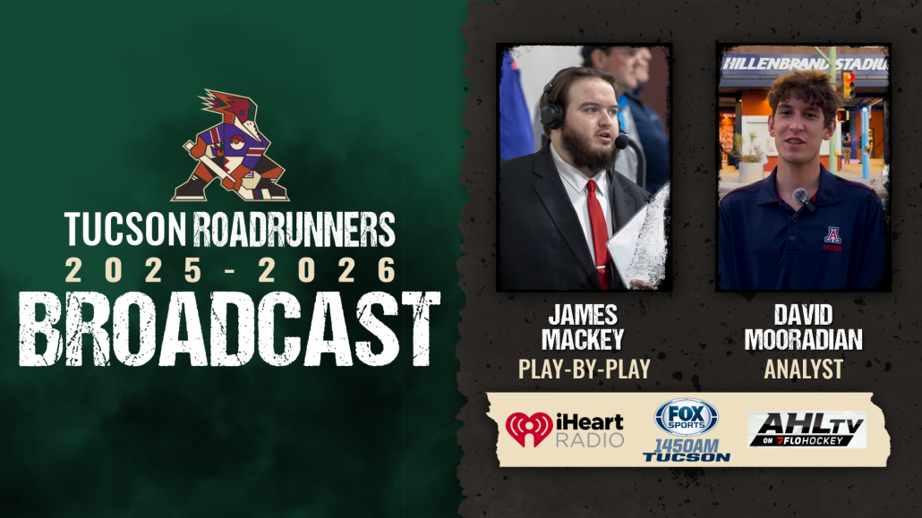 TUCSON — The Tucson Roadrunners, proud American Hockey League (AHL) affiliate of the Utah Mammoth, today announced that James Mackey has been named the team’s new play-by-play announcer and will also serve as a content contributor. Mackey will be joined in the broadcast booth this season by new analyst David Mooradian.