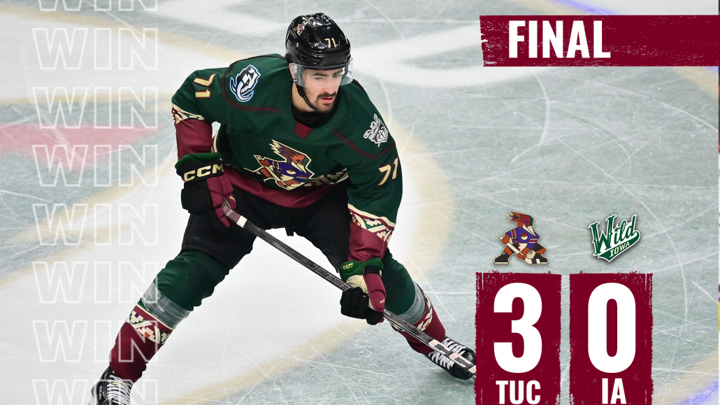 Des Moines, IA – The Tucson Roadrunners (4-4-1-0) opened their weekend series with a 3-0 shutout win over the Iowa Wild (2-5-0-1) Saturday night at Casey’s Center. Tucson was backed by a 19-save performance from Matthew Villalta, who earned his first shutout of the season and improved his record to 4-1-0 on the year.