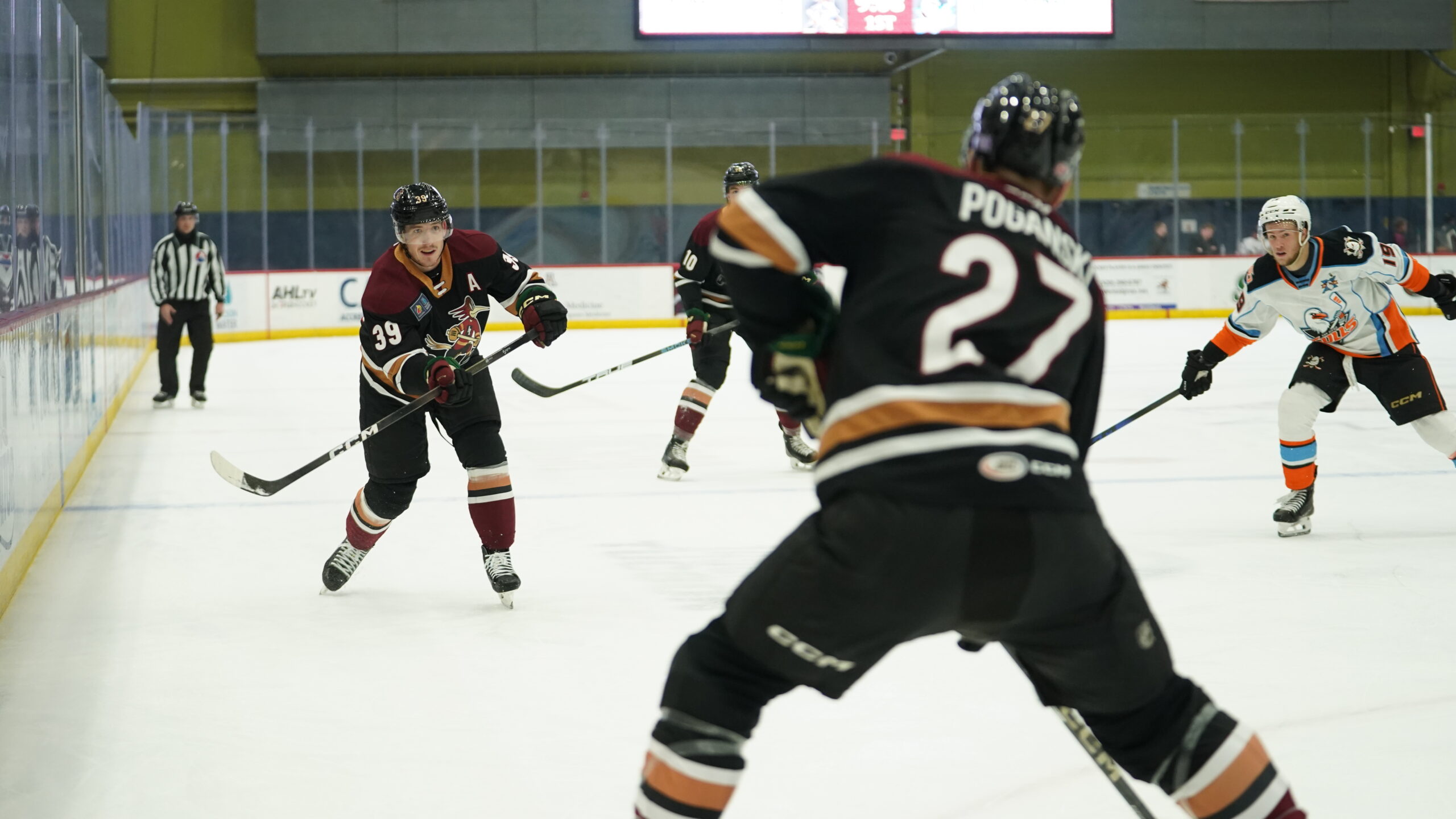 Tucson opened the scoring just before the five-minute mark as captain Austin Poganski led a quick rush into the offensive zone and slipped a pass to McCartney, who fired a shot past Ville Husso’s glove to give the Roadrunners a 1-0 lead.
