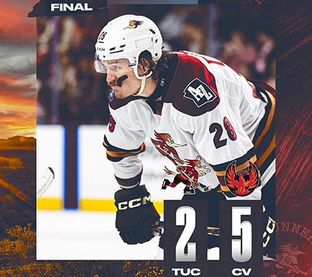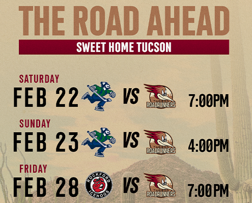 The Tucson Roadrunners (23-22-2-2) led wire to wire, kicking off their four-game homestand with a 3-2 win over the Abbotsford Canucks (27-21-1-1) on Saturday night at Tucson Arena. Forward Andrew Agozzino returned to the lineup for the first time since Jan. 14 after missing 15 games due to injury. Hunter Drew powered Tucson’s effort with a goal and a fight, marking his third goal in the last two games.