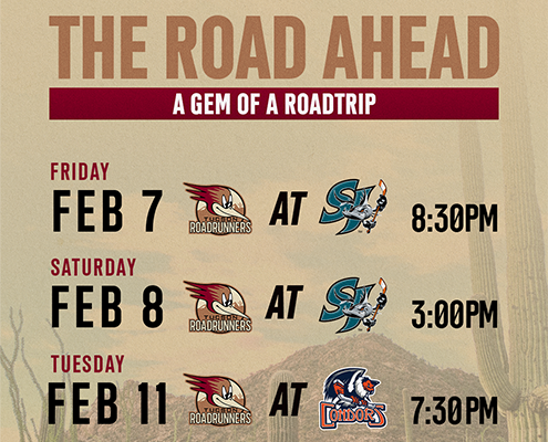 Upcoming Games (All Times MST) Wednesday, March 5 @ Ontario Reign at 8:00 p.m. Friday, March 7 @ Bakersfield Condors at 8:00 p.m. Saturday, March 8 @ Bakersfield Condors at 8:00 p.m.