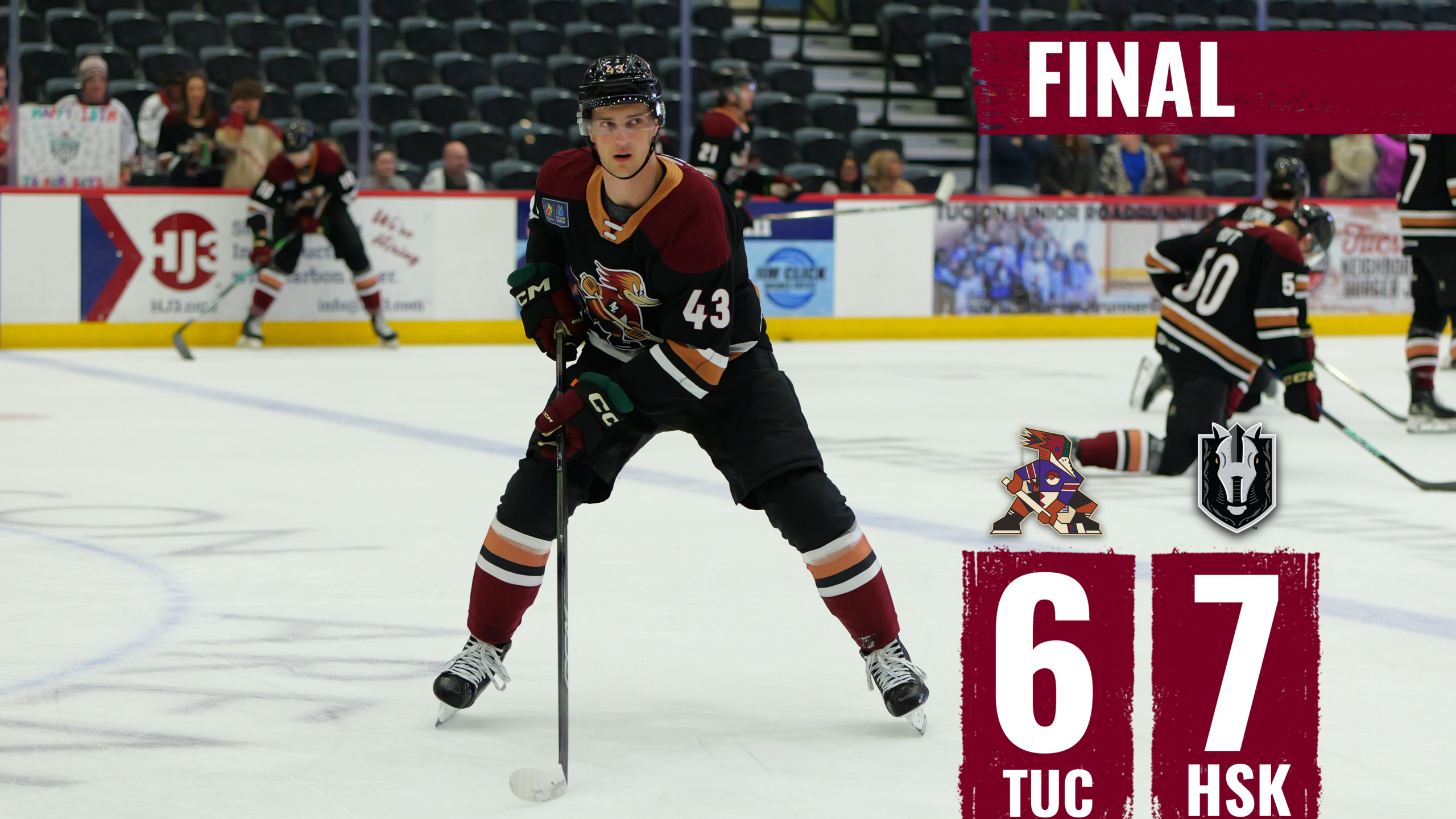 Despite the loss, Tucson earned a point to remain in the thick of the Pacific Division playoff race. The Roadrunners sit in eighth place, three points back of both Henderson and the San Diego Gulls, who currently hold the final playoff spot in the division.