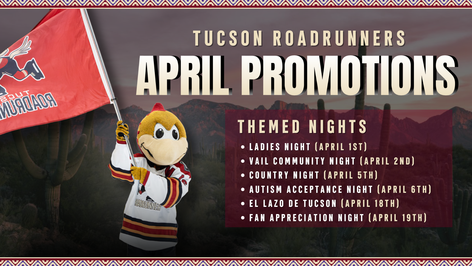 “The 2024-25 season has been exciting since day one, and the conclusion should offer some of the most exciting moments of the campaign,” Tucson Roadrunners President Bob Hoffman said. “We have great partners, and many will be showcased for Southern Arizona, including OneAZ Credit Union, the City of Tucson, Williams and Associates, and AMR. We are excited to offer great ticket packages and great entertainment value as we come to the end of the regular season.”