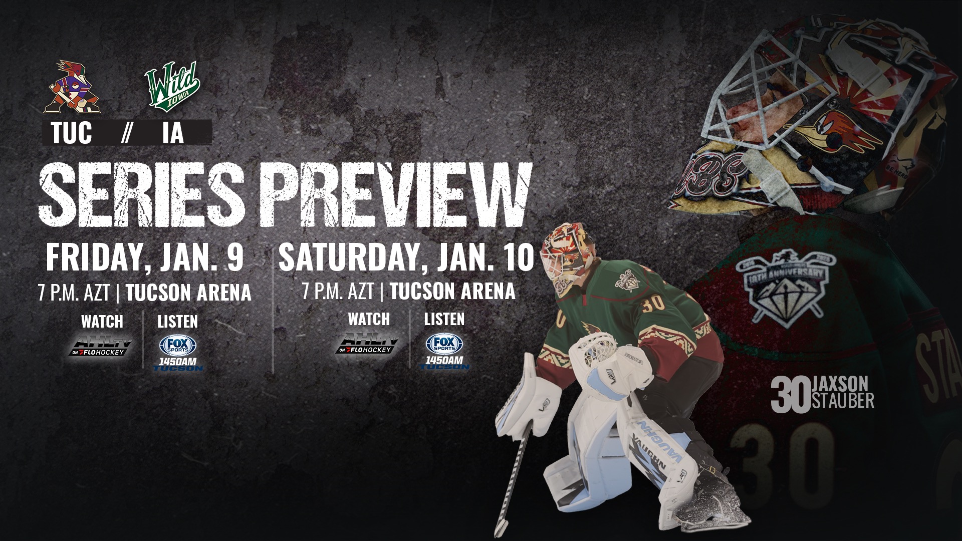 Game 1: Friday, Jan. 9 at 7 p.m. AZT, Tucson Arena