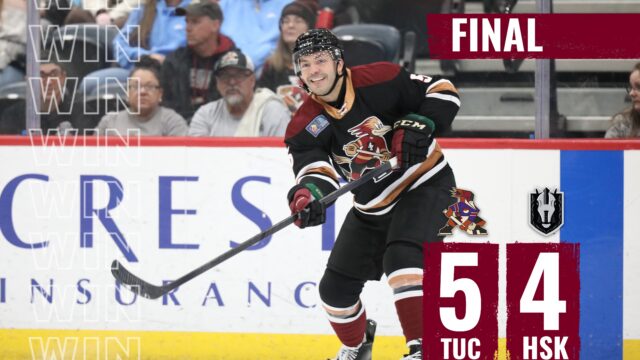 The Tucson Roadrunners fell in heartbreaking fashion for the second straight night in a 5-4 loss to the Henderson Silver Knights on Saturday at Lee’s Family Forum.