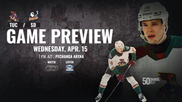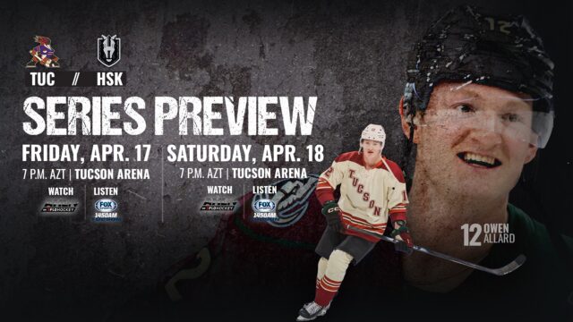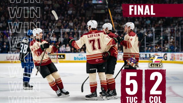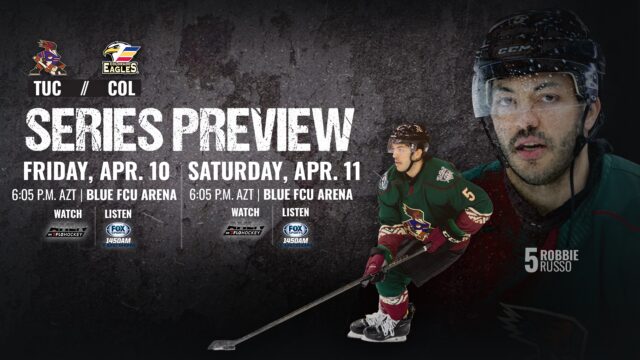 The Tucson Roadrunners continue their final road trip of the regular season with a two-game series against the Colorado Eagles on Friday and Saturday at Blue Federal Credit Union Arena. Both games will start at 6:05 p.m. AZT.