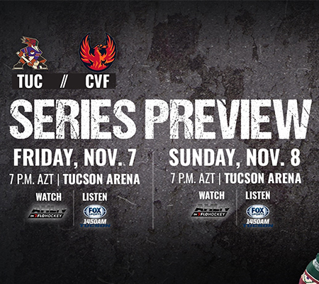 After a four-game stretch against Central Division opponents, including last weekend’s two-game trip to Des Moines, the Tucson Roadrunners (4-4-2-0) return to Southern Arizona to open a weekend series against the Pacific Division rival Coachella Valley Firebirds (3-4-1-0).