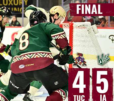 The Tucson Roadrunners wrapped up their quick two-game road trip with a dramatic comeback effort in a 5-4 overtime loss to the Iowa Wild on Sunday afternoon at Casey's Center.