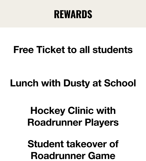Enroll your whole school or individual organizations within and raise funding for your programs while enjoying Roadrunner games. Extra credit as you compete against other schools for the chance of taking over a Roadrunners game